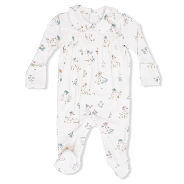 Flower Ducklings - Smocked Peter Pan Snap Footie