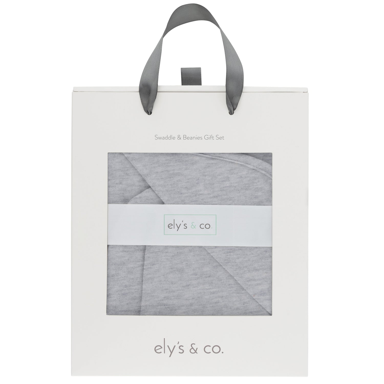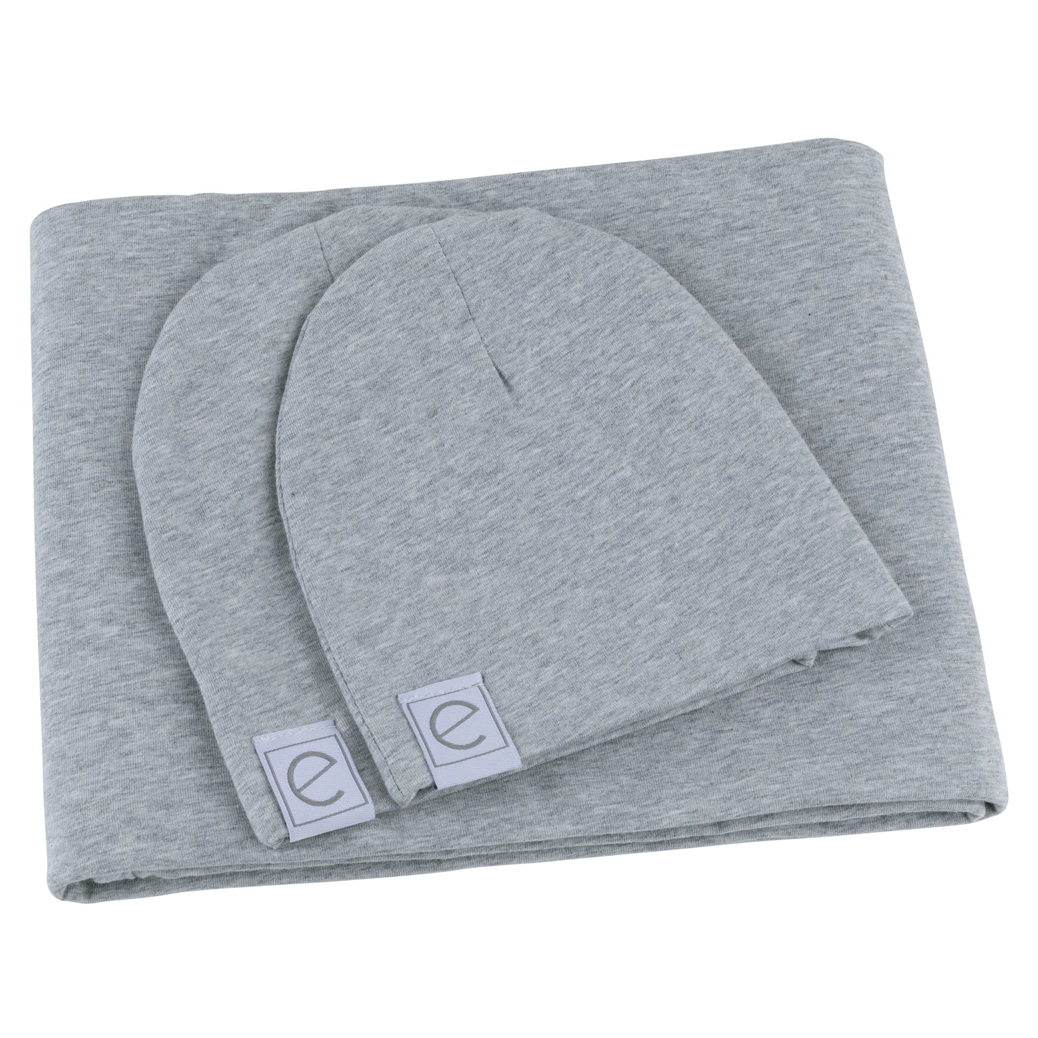 Jersey Knit Cotton Swaddle Blanket and Beanie Gift Set - Heather Grey