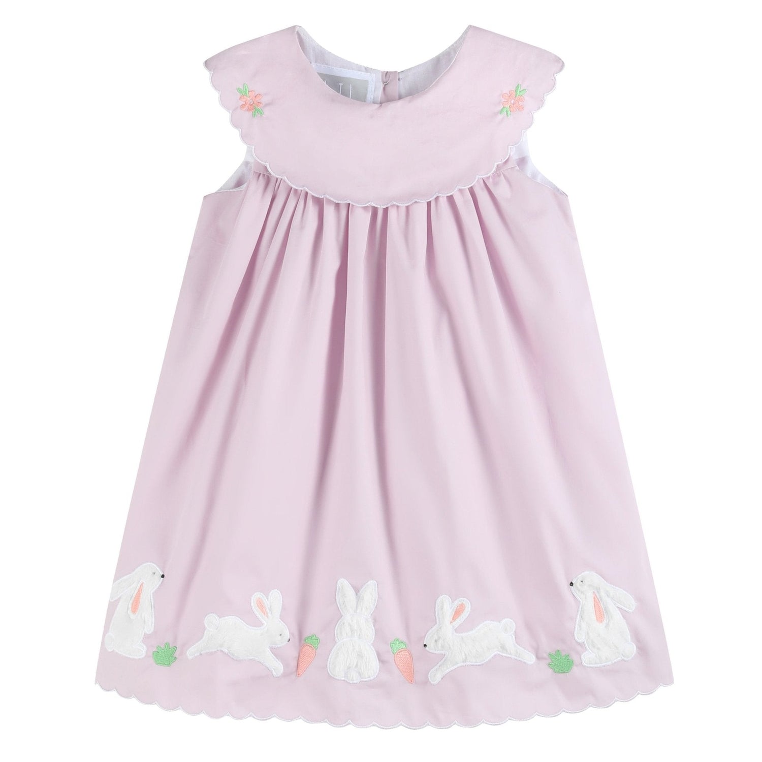 This darling Light Purple Bunny and Flowers Dress is full of springtime charm! It features a pretty scalloped collar adorned with delicate flower embroidery, adding an extra touch of sweetness. Along the bottom, are adorable fuzzy bunnies which brings the perfect amount of playful detail. Ideal for Easter, garden parties, or sunny day outings—this dress is as precious as it is picture-perfect!