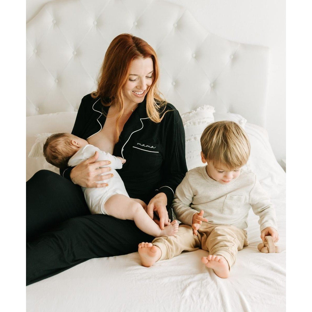 The most PERFECT gift for moms of all ages! Cozy up in these luxurious, buttery soft long jammies all year long. Our long sleeve Mama Pajamas are thoughtfully designed to make you feel good no matter the season of motherhood you're in. From pregnancy to postpartum and beyond, these jammies are lovingly crafted to bring you comfort through all the seasons of mom life. Give these PJs as an expecting mom gift, a gift for a postpartum mom, or a bit of comfort for any special mama you love.