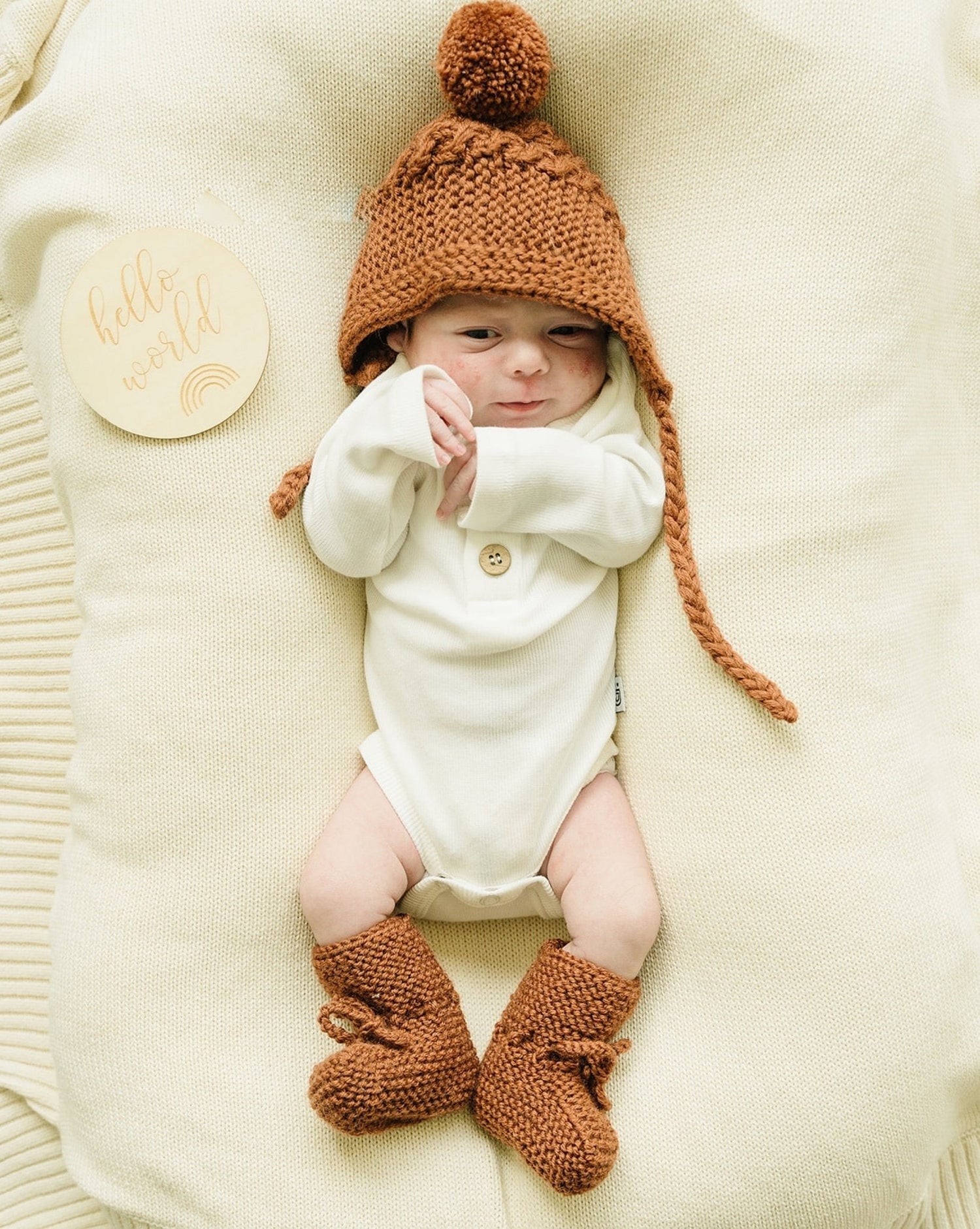 Merino Wool Bonnet & Bootie Set | Cinnamon - One Size is backordered and will ship as soon as it is back in stock.