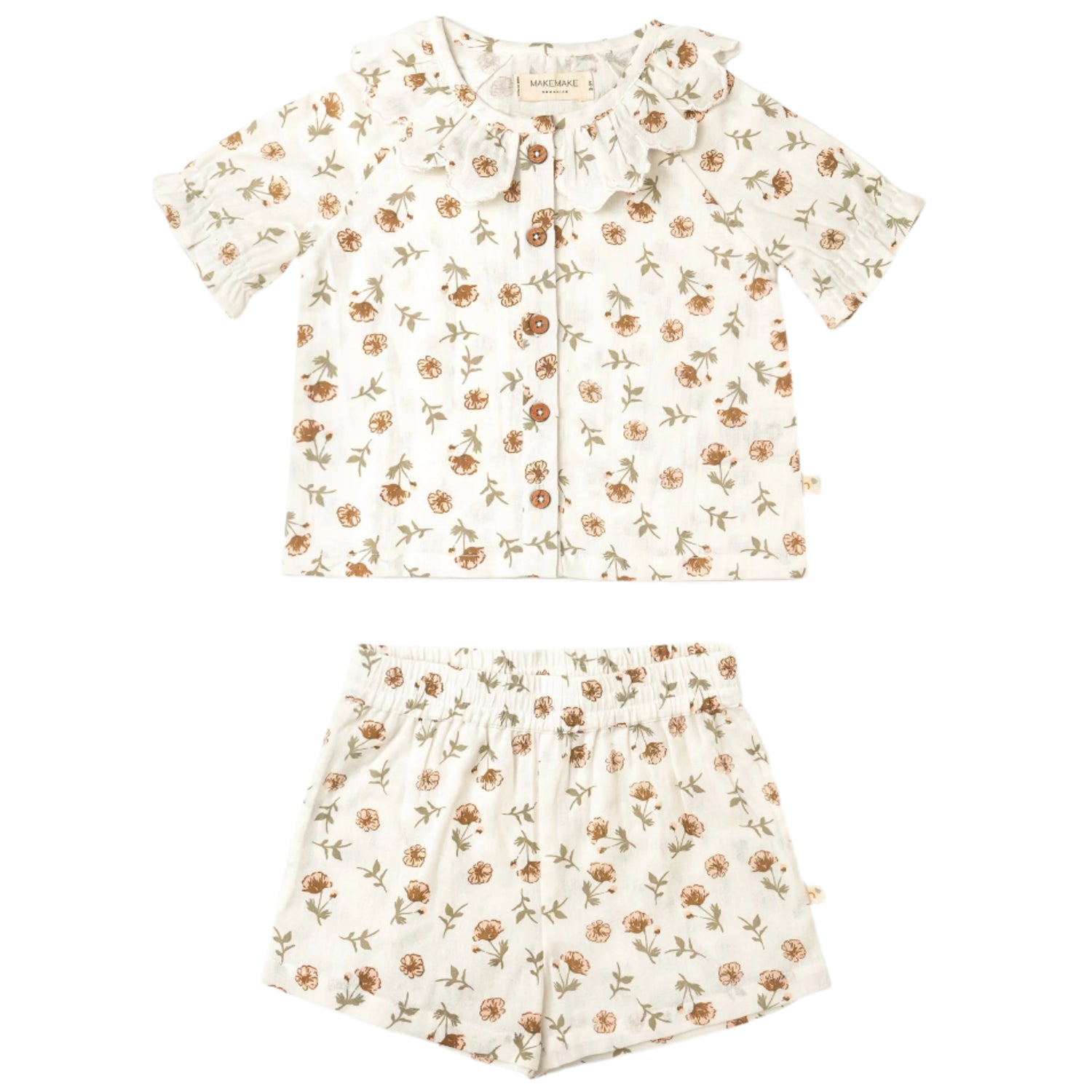 Organic Collared Puff Sleeve Top & Shorts Set - Fleur