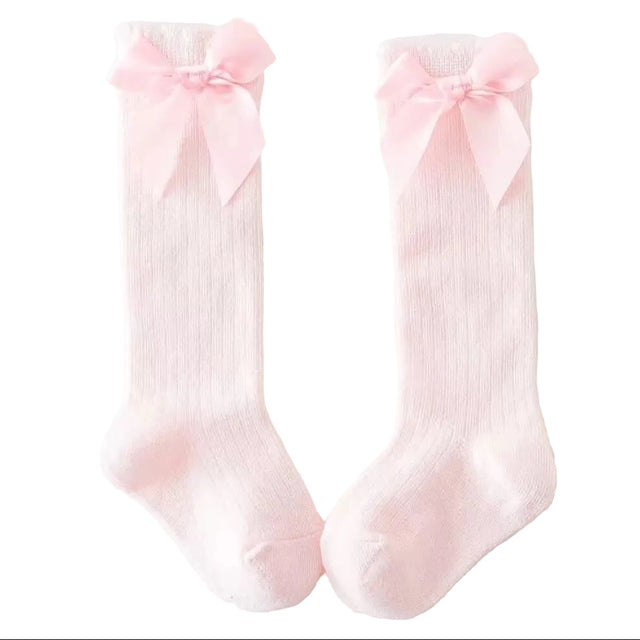 Pink Cotton/Poly Lace Knee High Socks with Bow