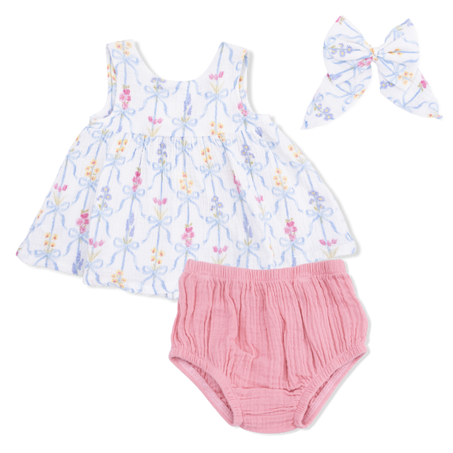 Sweetly Timeless: Bow Dress + Bloomer with Large Bow Set