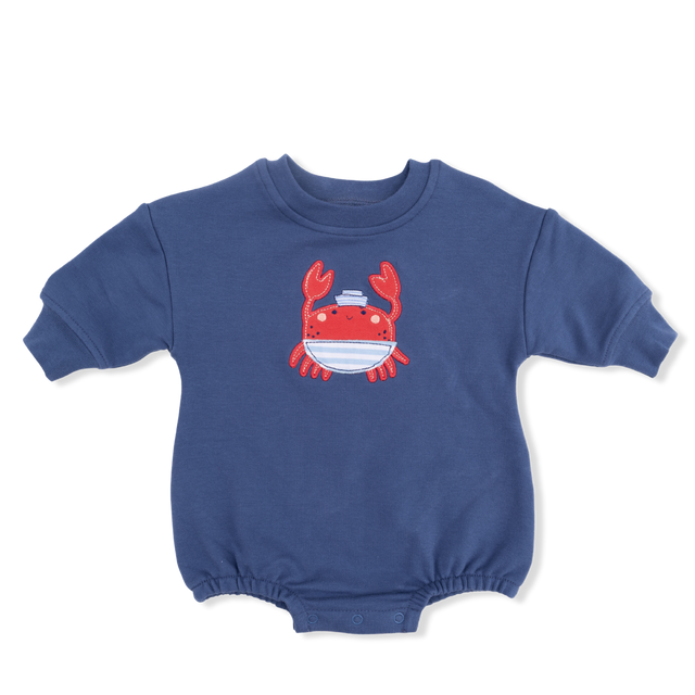 Bring a touch of seaside charm to everyday wear with our Sweatshirt Bubble! Made from soft, breathable organic French terry, this cozy bubble sweatshirt is gentle on delicate skin and perfect for all-day comfort. A playful sailor crab applique adds whimsical nautical style to keep little ones smiling.