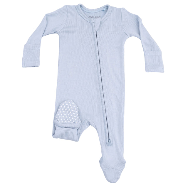 Solid Niagara Mist Rib - 2 Way Zipper Footie
