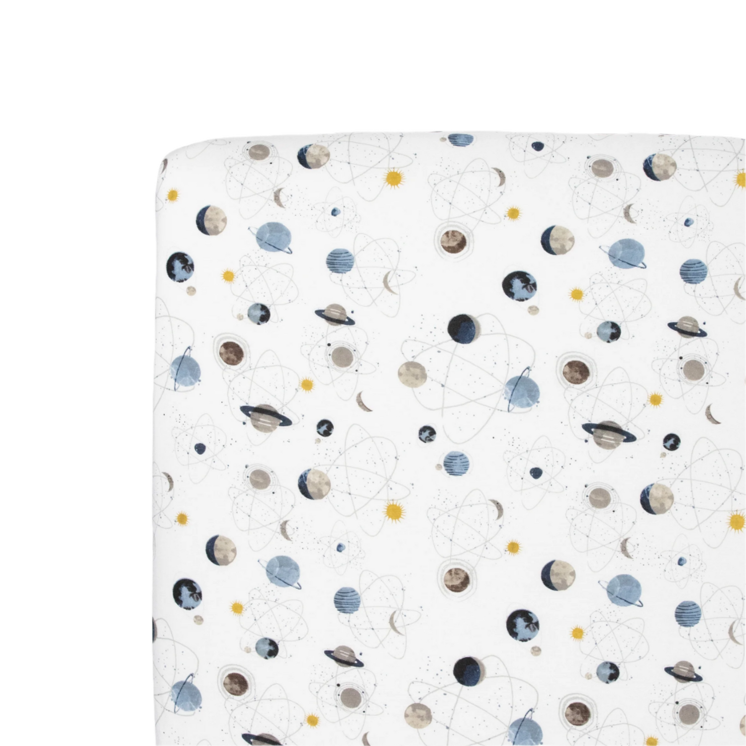 Stretch Knit Crib Sheet - Planets - Planets is backordered and will ship as soon as it is back in stock.