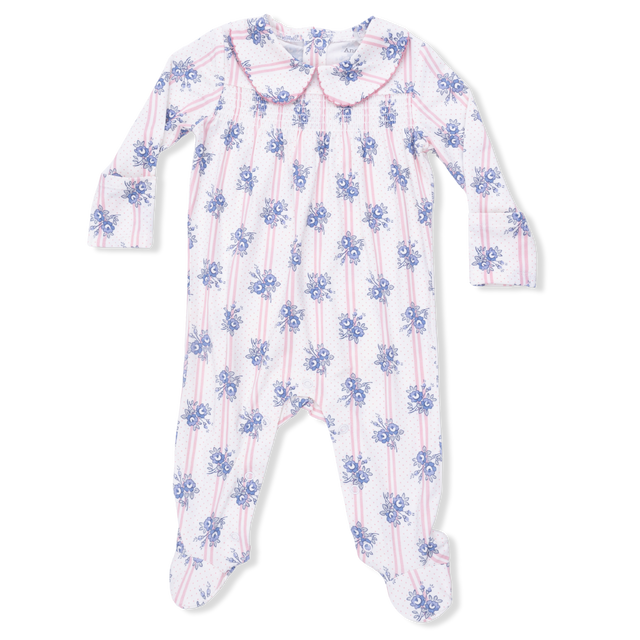 Stripe Dot Roses - Smocked Peter Pan Snap Footie