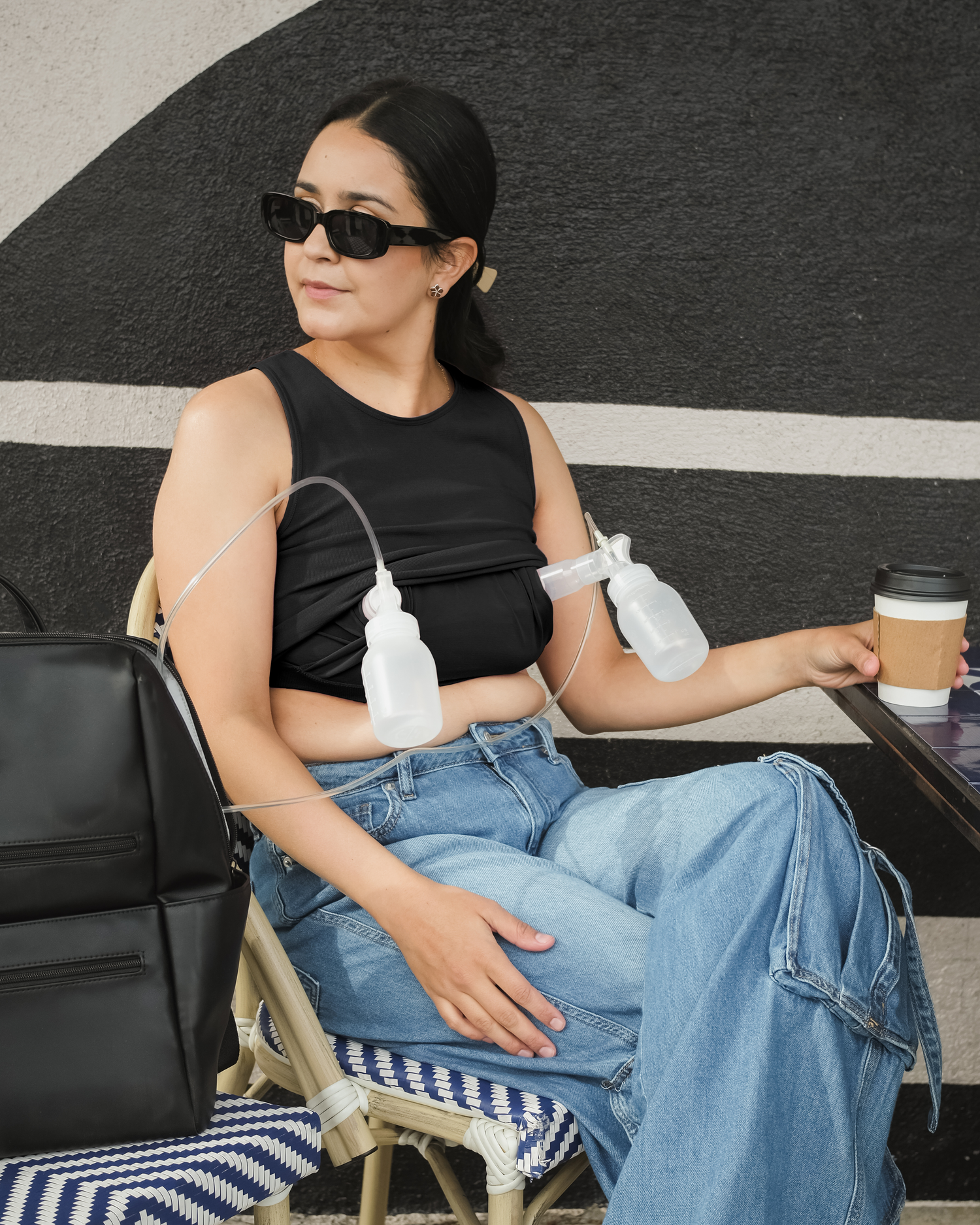 Sublime® Bamboo Hands-Free Pumping Longline Bra Top | Black - HoneyBug