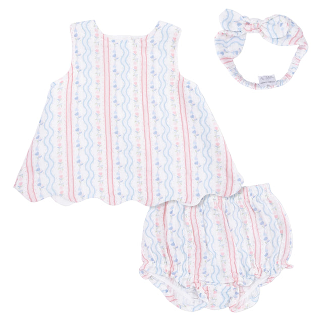 Tulip Stripe - Scallop Back Top with Bloomer & Headband