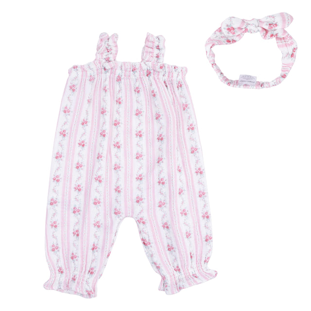 Winding Roses Stripe - Ruffly Strap Overall & Headband