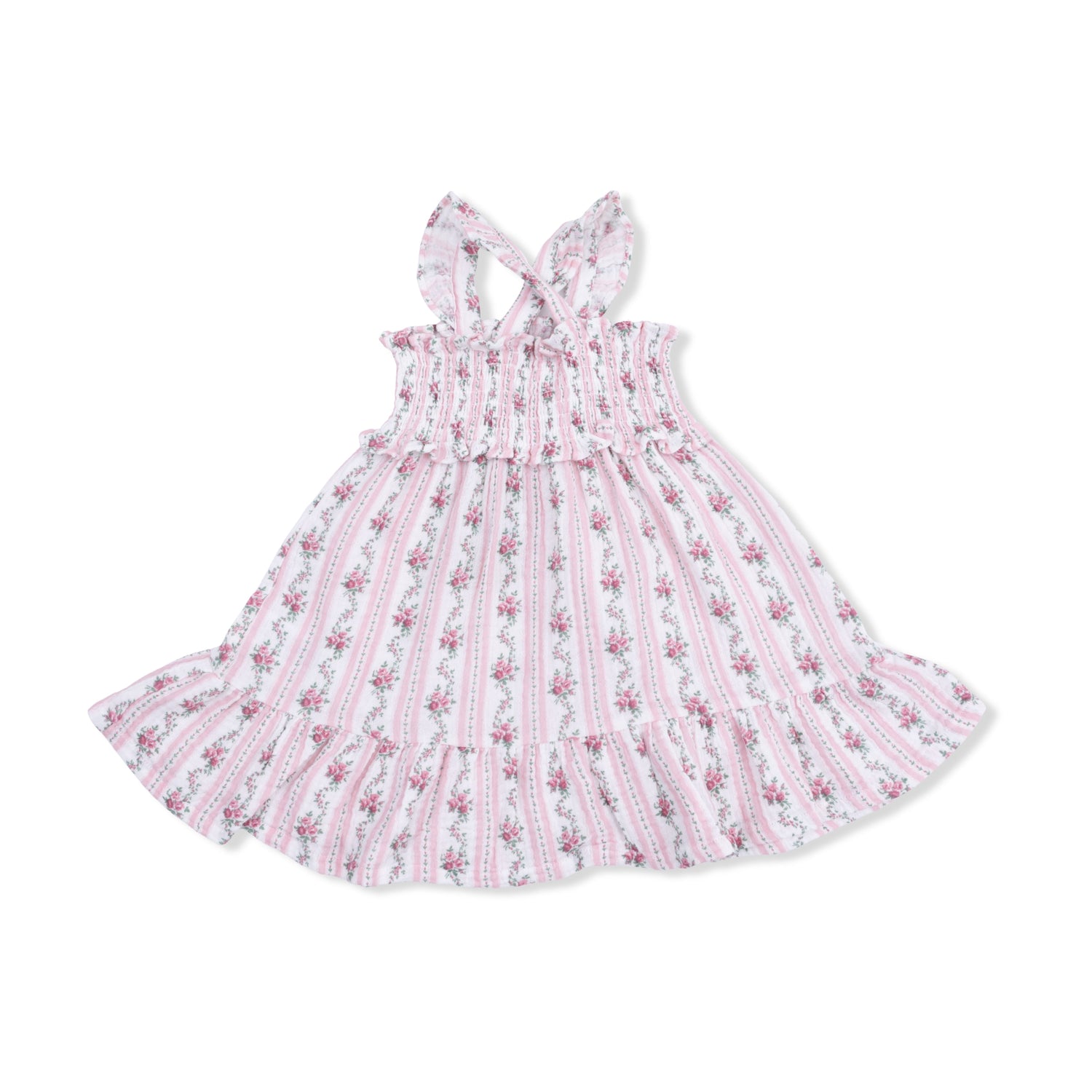 Winding Roses Stripe - Smocked Ruffle Sundress & Bloomer